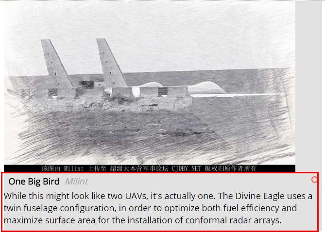 El Divine Eagle es un dron proyectado para volar a grandes altitudes y detectar desde muy lejos, mediante su sofisticado sistema de siete radares, tanto aviones 'stealth' como buques de guerra. También puede detectar camiones con misiles antibuque y defensas aéreas en tierra.